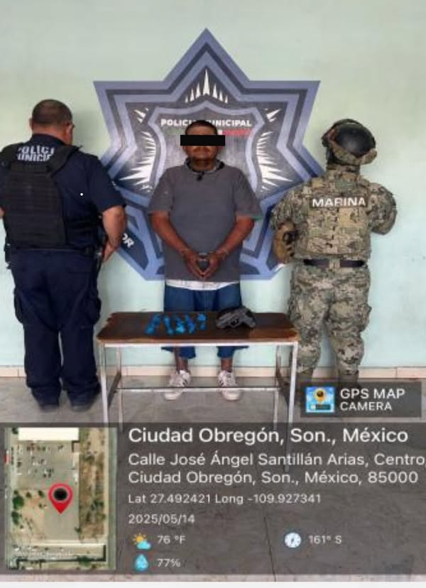 Elementos de la Policía Municipal y Marina detuvieron a un hombre en posesión de probable droga y un objeto con apariencia de arma de fuego,