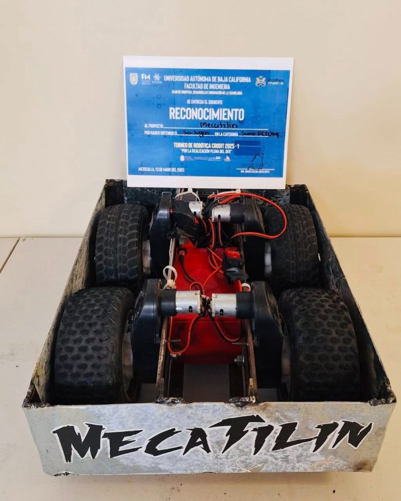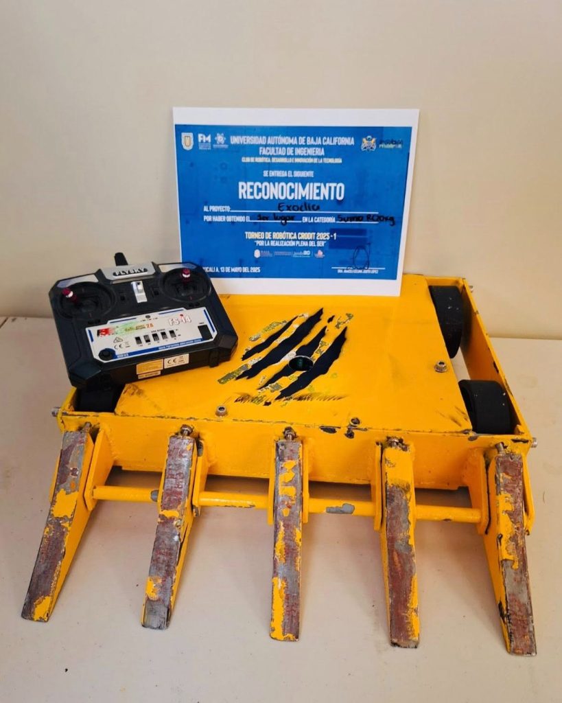 San Luis Río Colorado, Sonora; 18 de mayo de 2025.- Estudiantes de la carrera de Ingeniería en Mecatrónica de la Universidad Tecnológica de San Luis Río Colorado (Utslrc) arrasaron en el Torneo de Robótica CRODIT 2025, al llevarse el podio completo en la categoría Sumobot 20 kg, destacó José Arturo Delgado Reza, rector de la Utslrc.