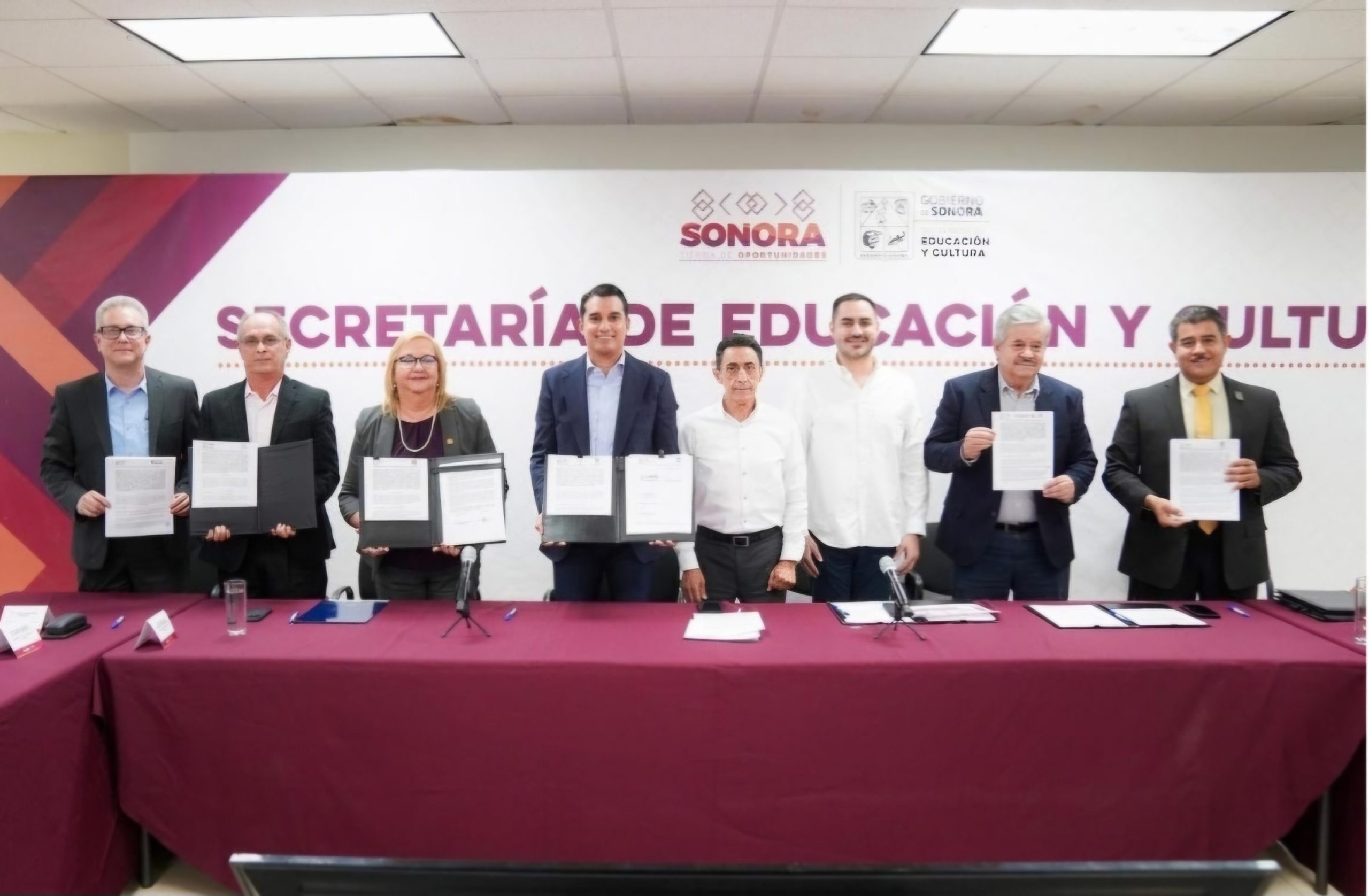 El funcionario estatal firmó el documento con la rectora de la Universidad de Sonora (Unison), María Rita Plancarte Martínez; los rectores de El Colegio de Sonora (Colson), José Luis Moreno Vázquez, y del Instituto Tecnológico de Sonora (Itson), Jesús Héctor Hernández López.