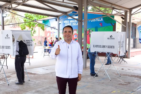 Guaymas, Sonora | 1º de junio de 2025.- En el marco de la histórica jornada electoral de este domingo, el senador por Sonora, Heriberto Aguilar Castillo, acudió a emitir su voto en Guaymas, su ciudad natal, desde donde hizo un llamado a la ciudadanía a participar de manera libre y consciente en la transformación del Poder Judicial.