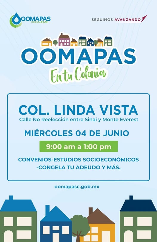 Este MIÉRCOLES estaremos en COLONIA LINDA VISTA con nuestro módulo móvil para pago de recibo de agua, aclaraciones y convenios de pago.