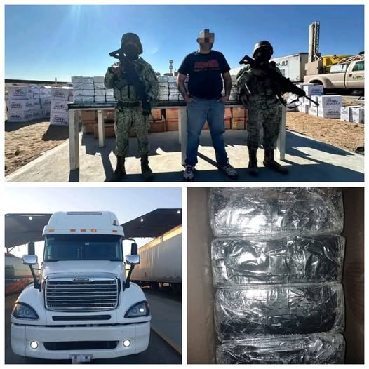 Elementos del Ejército Mexicano, integrantes de la Mesa Estatal de Seguridad, dieron a conocer la detención de una persona identificada como Israel “N”, quien conducía un tractocamión con más de 500 kilos de cocaína en la caja de la unidad.