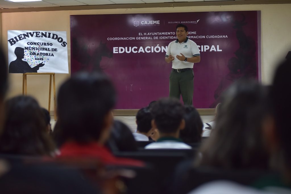 Con la finalidad de que las y los estudiantes desarrollen habilidades de compresión, análisis y crítica social sobre las diferentes problemáticas que acontecen en el mundo, el Ayuntamiento mediante la Dirección de Educación Municipal y en conjunto con la Coordinación General de Identidad y Formación Ciudadana, llevó a cabo el Concurso de Oratoria 2025.