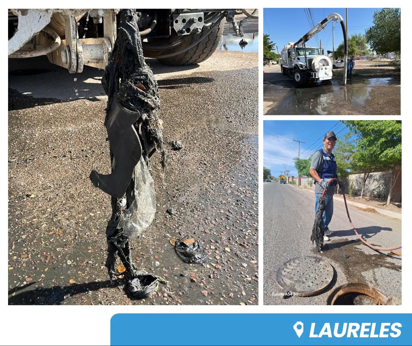 El equipo técnico del Organismo Operador de Agua Potable (Oomapas) de Navojoa trabajó en el desazolve en pozo de visita para remover residuos de manera manual para que el flujo de aguas negras sea eficiente.