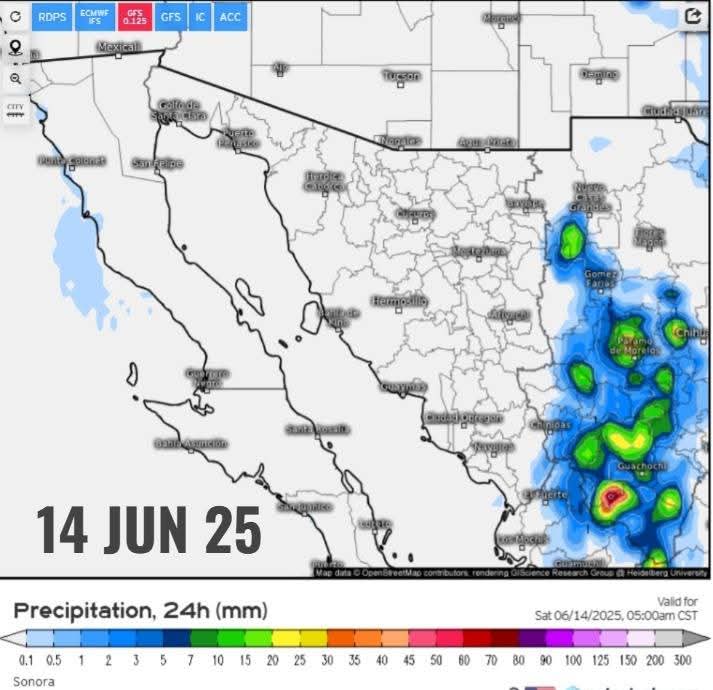 Hermosillo, Sonora a 13 de junio de 2025.- viernes basándose en la valoración y análisis de la información meteorológica en general y con base en información del Servicio Meteorológico Nacional y diferentes fuentes oficiales de los Estados Unidos, la Coordinación Estatal de Protección Civil emite el siguiente pronóstico: