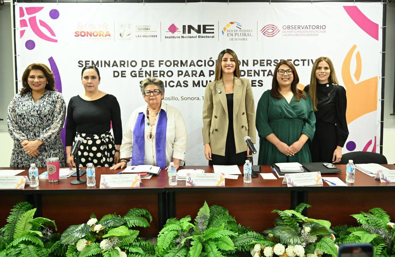 Al seminario asistieron presidentas y síndicas de nueve municipios, así como funcionarias públicas y legisladoras. Durante la jornada, que se llevó a cabo en la Sala de Capacitación del INE en Sonora, se impartieron herramientas clave en temas como igualdad de género, prevención de la violencia política y liderazgo con enfoque feminista.