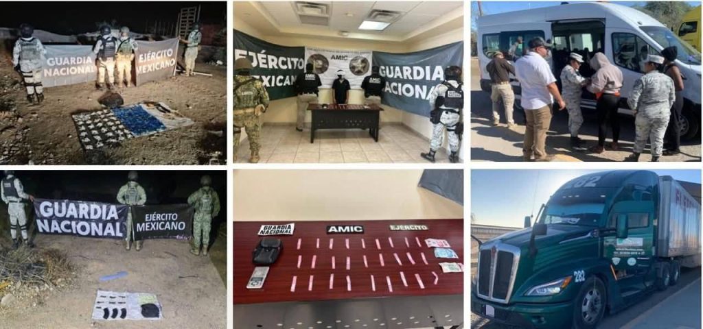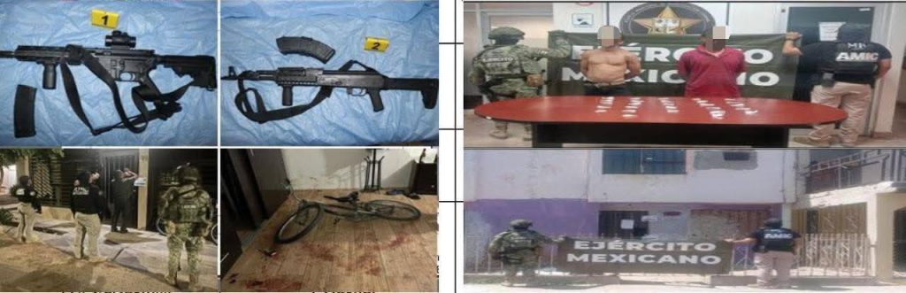 De forma coordinada, elementos del Ejército Mexicano, la Guardia Nacional, la Fiscalía General de la República (FGR), la Secretaría de Marina, la Policía Estatal de Seguridad Pública (PESP), y la Agencia Ministerial de Investigación Criminal (AMIC) ejecutaron ocho órdenes de aprehensión, ocho cateos, aseguraron tres inmuebles y 10 vehículos, de los cuales tres cuentan con reporte de robo, dos son motocicletas y un tractocamión.