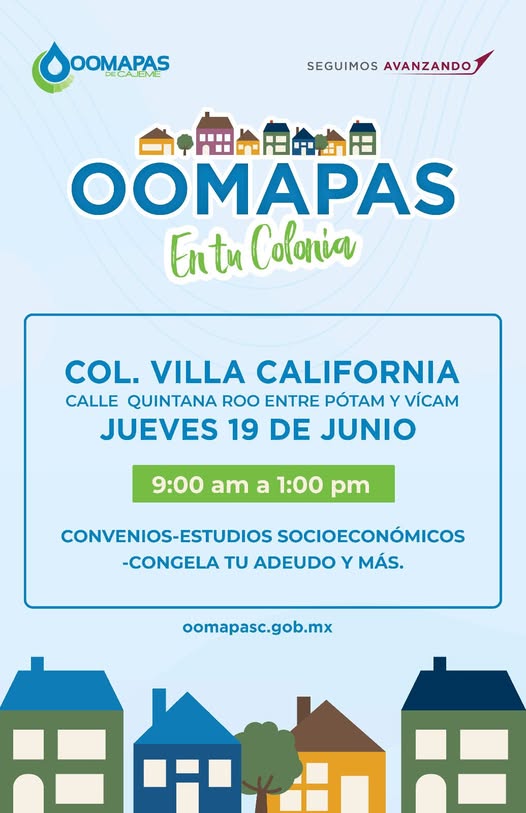 Este JUEVES estarán en la COLONIA VILLA CALIFORNIA con el módulo móvil para pago de recibo de agua, aclaraciones y convenios de pago. Acude y regulariza tu adeudo, tienen un plan a tu medida. #OOMAPASC #tupagotuobra Navegación de entradas Legisladores coordinan esfuerzos en beneficio de los pueblos originarios Con Plan Sonora, gobernador Durazo consolida al estado como modelo de minería sustentable