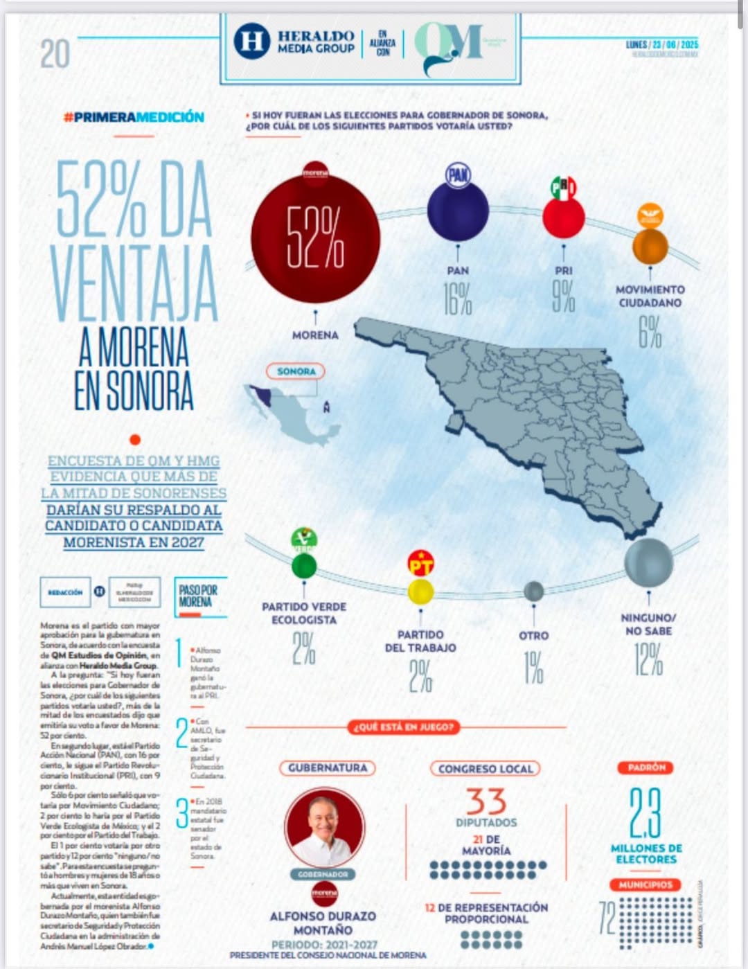 Sin duda, está preferencia es producto del buen trabajo y los buenos resultados que ha entregado el Gobernador Alfonso Durazo en su administración.