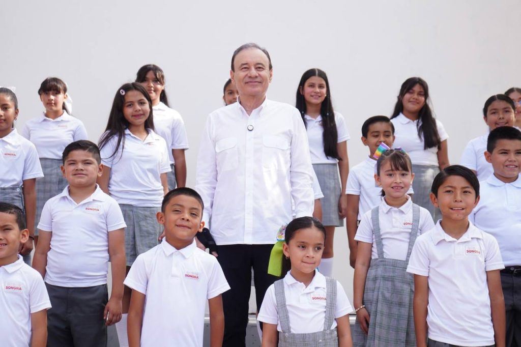 El gobernador Durazo Montaño explicó que para el siguiente ciclo escolar se destinó una inversión de más de 300 millones de pesos para el programa de uniformes escolares gratuitos, con un beneficio directo para más de 440 mil estudiantes de escuelas públicas de nivel básico.