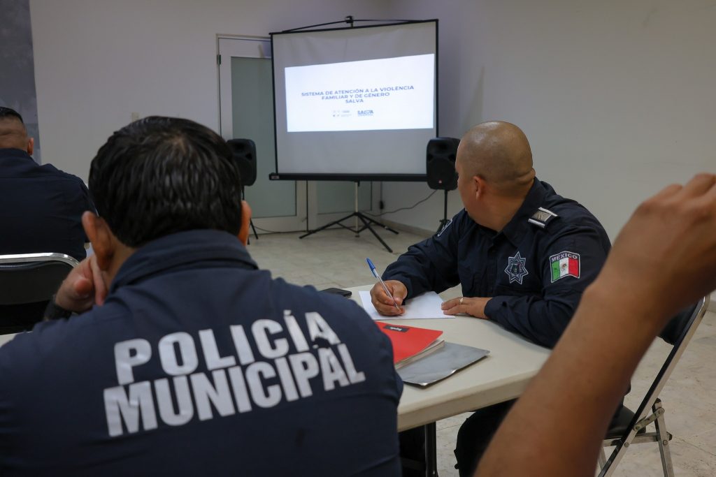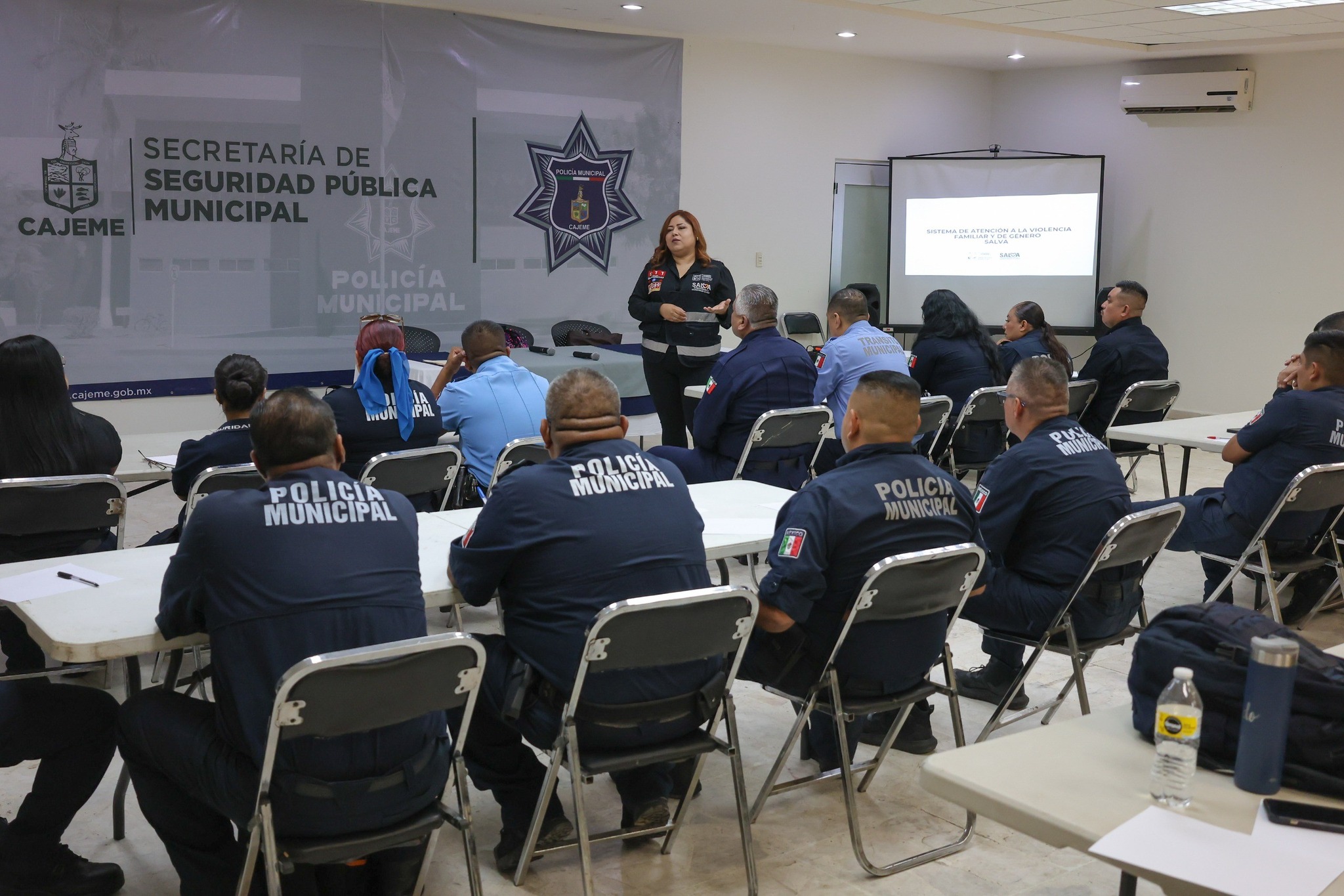 Con el objetivo de fortalecer la atención, protección y apoyo a las víctimas de violencia familiar y de género, elementos activos de la Secretaría de Seguridad Pública Municipal participan en el curso del Sistema de Atención a la Violencia Familiar y de Género del programa SALVA, informó el jefe de la Policía Preventiva y Tránsito de Cajeme, Claudio Cruz Hernández.