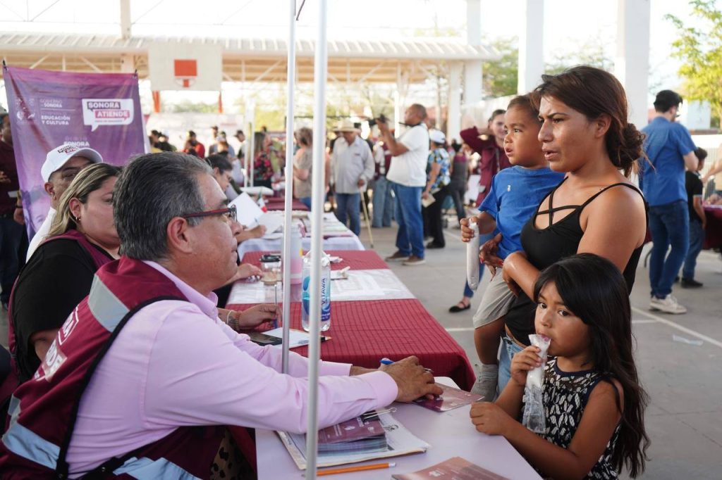 La feria de los servicios contó con la participación activa de servidoras y servidores públicos del Gobierno de Sonora, quienes atendieron personalmente a las y los asistentes, escuchando sus necesidades y coordinando los apoyos en territorio.
