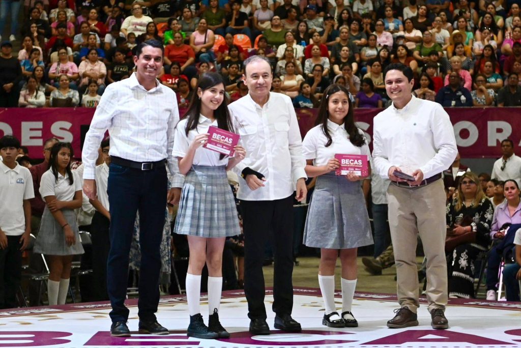 El mandatario estatal enfatizó la importancia de respaldar al alumnado sonorense con becas y estímulos educativos que garanticen la continuidad de su formación escolar, marcando la diferencia para cursar los distintos grados académicos sin limitaciones y generando, además, un impacto positivo en la economía de los hogares.