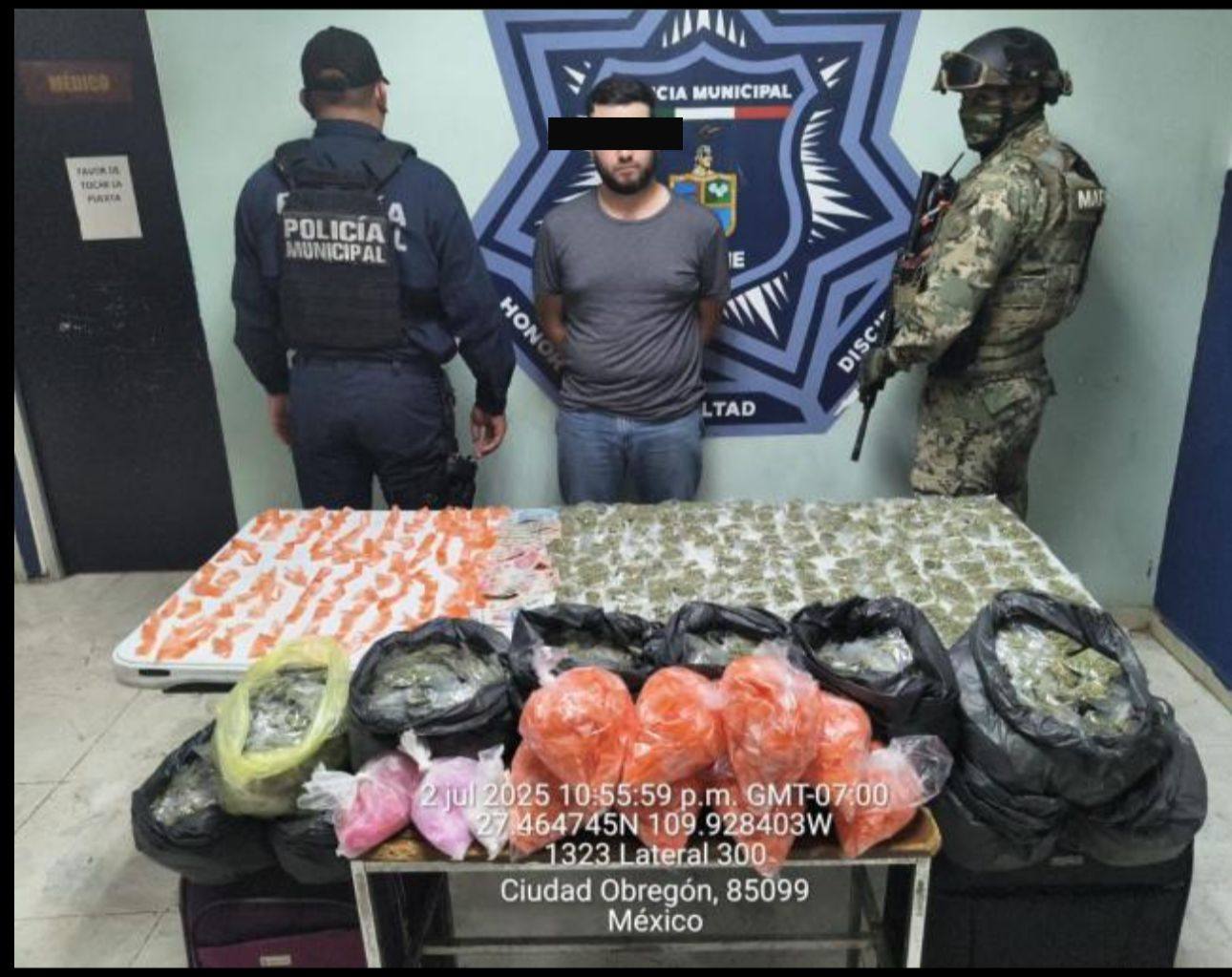Como parte de la estrategia integral contra el delito en el municipio, elementos de la Secretaría de Seguridad Pública Municipal de Cajeme, en coordinación con la Secretaría de Marina, realizaron diversas detenciones que derivaron en el aseguramiento de más de 3 mil dosis de droga en distintas colonias de Ciudad Obregón.