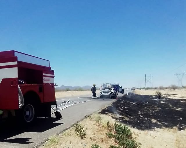 Debido a un incendio de un vehículo, sin lesionados, hay tránsito lento en el tramo carretero Hermosillo-Magdalena, kilometro 23.