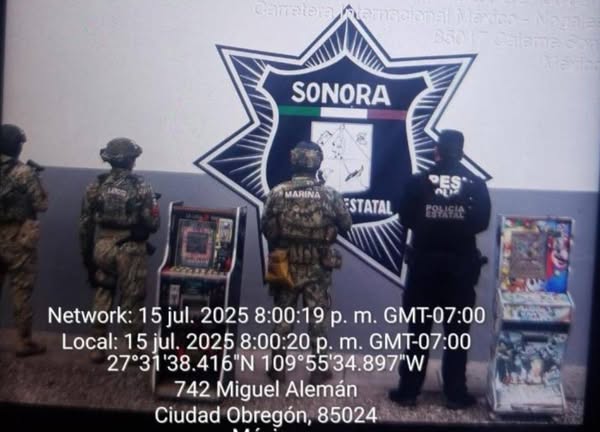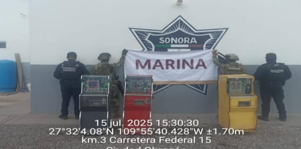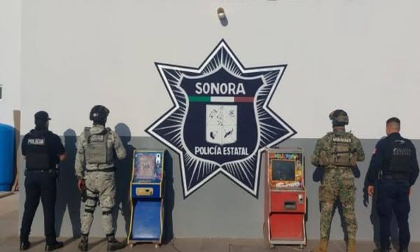 Finalmente, en labores de patrullaje preventivo en la colonia Pioneros de Cajeme, en un negocio de abarrotes, fueron localizadas dos máquinas tipo tragamonedas más.