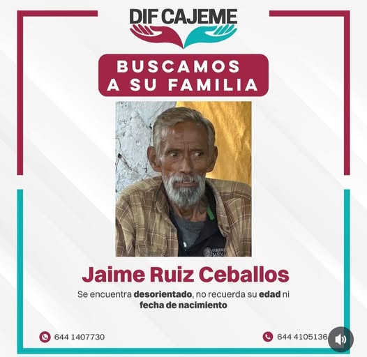En el #DIFCajeme buscan a los familiares del señor Jaime Ruiz Ceballos.