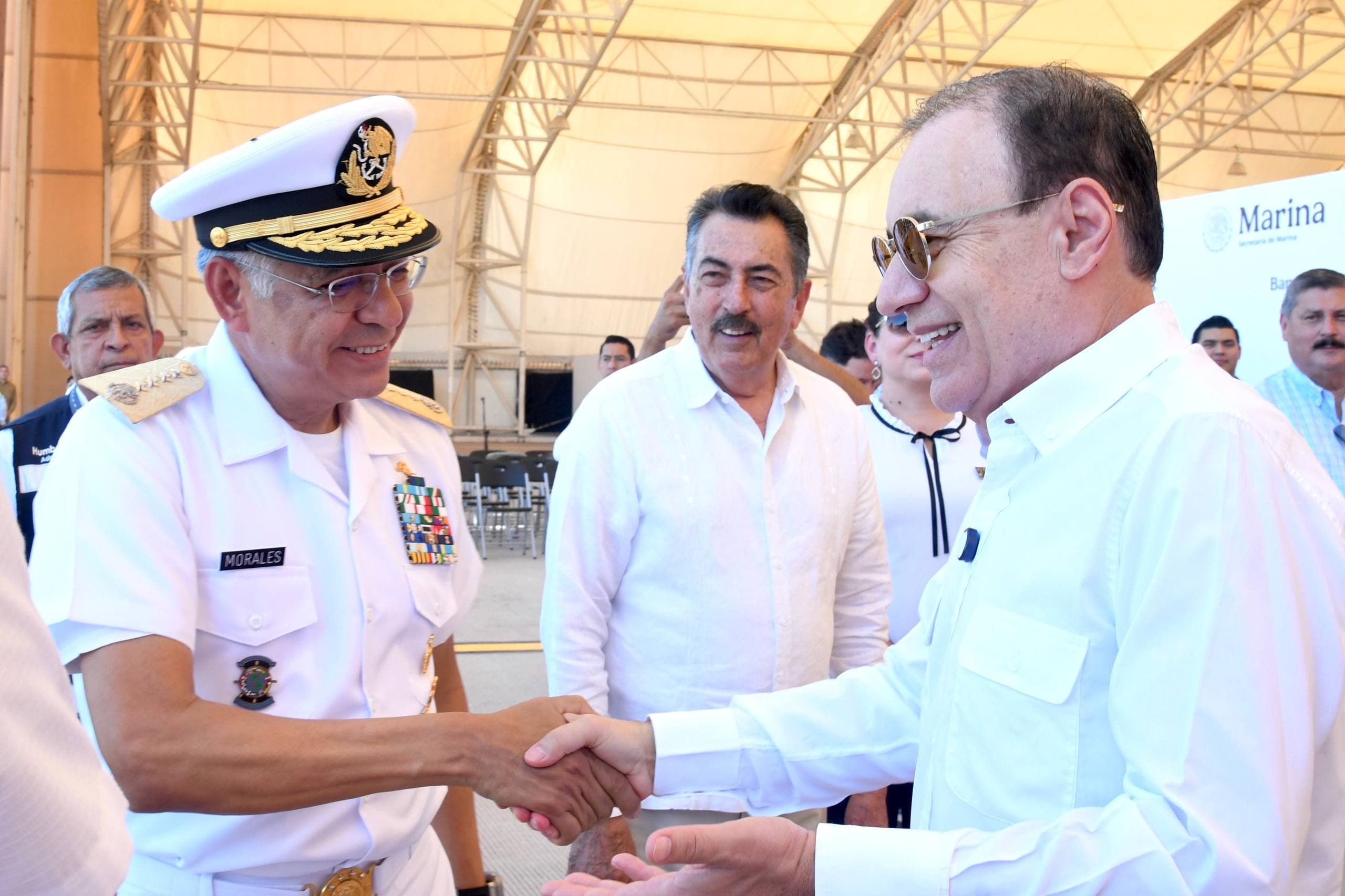 En su intervención, el gobernador Alfonso Durazo Montaño reconoció el respaldo de la Secretaría de Marina para la realización de proyectos clave para fortalecer la economía de la región.