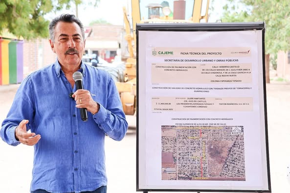 El Alcalde explicó que la obra contempla dos tramos importantes, el primero desde la calle Manuel de Jesús Clouthier (400) hasta la calle Cenzontle, y el segundo desde la calle Justicia hasta Noche Buena, en total, se rehabilitarán 550 metros lineales, abarcando una superficie de 6 mil 215 m², con una inversión estatal de 11 millones 400 mil pesos proveniente de SIDUR 2025.