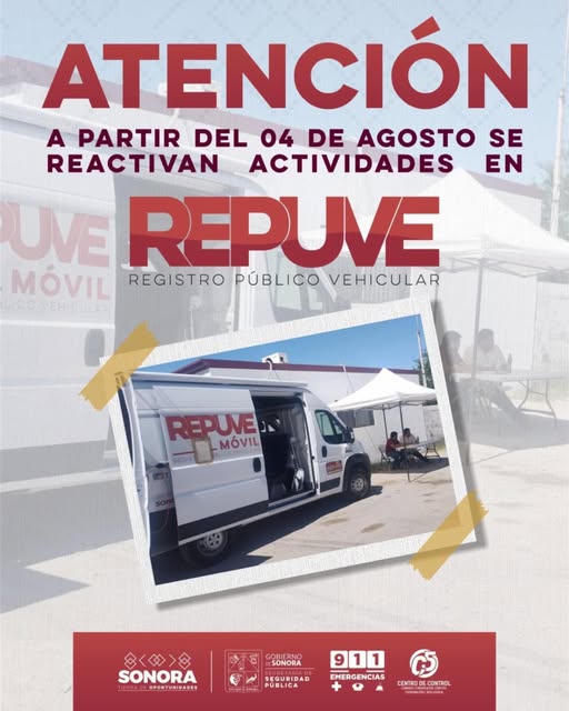 El Registro Público Vehicular (Repuve), dependiente de la Secretaría de Seguridad Pública (SSP), coadyuva con las y los sonorenses, acercándose a sus localidades y facilitando el proceso que brinda certeza jurídica sobre la propiedad de sus vehículos.