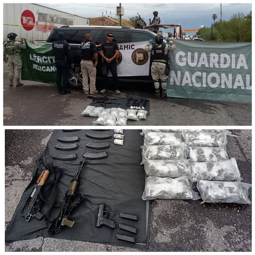 Santa Ana, Sonora, 22 de julio de 2025.- Como resultado de un operativo conjunto entre la Agencia Ministerial de Investigación Criminal (AMIC), la Secretaría de la Defensa Nacional (SEDENA), la Policía Estatal de Seguridad Pública (PESP) y la Guardia Nacional (GN), fue capturado Carlos “N”, de 33 años, en posesión de armas de fuego, narcóticos y un vehículo con reporte de robo en los Estados Unidos de América.