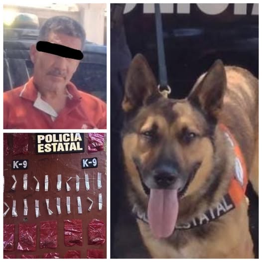 Con el apoyo de Zeusz, ejemplar canino especializado en detección de sustancias narcóticas, armas de fuego y divisas, perteneciente a la unidad K-9 de la Policía Estatal de Seguridad Pública (PESP), se logró la detención de Joel “N”.
