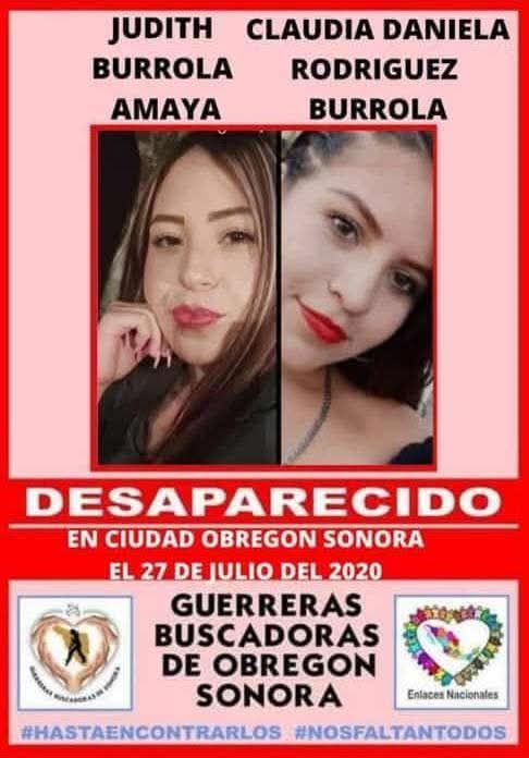 Fue un 27 de julio pero del 2020 cuando Judith Burrola Amaya y Claudia Daniela Rodríguez Burrola desaparecieron y hasta la fecha nada se sabe de ellas.