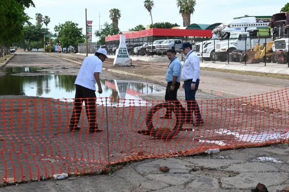 Durante el mismo constataron el arranque de trabajos en tres hundimientos detectados a partir de las últimas lluvias; el primero en carril sur de la calle Nainari entre Zacatecas y Puebla en colector principal de 18 pulgadas en colonia Zona Norte, el segundo en colector de 36 pulgadas en carril poniente de la calle Michoacán esquina con Juan de la Barrera de la colonia Faustino Félix y un tercer hundimiento en atarjea de 10 pulgadas en calle Otancahui esquina con calle Tabachin colonia Fovisste 2.