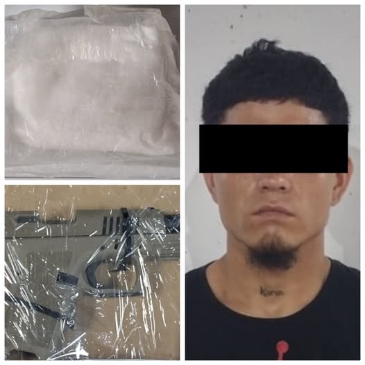 La detención se llevó a cabo cuando sorprendieron a la persona con un arma de fuego, tipo pistola, calibre .9mm, además de asegurarle una bolsa con sustancia granulada característica al narcótico.