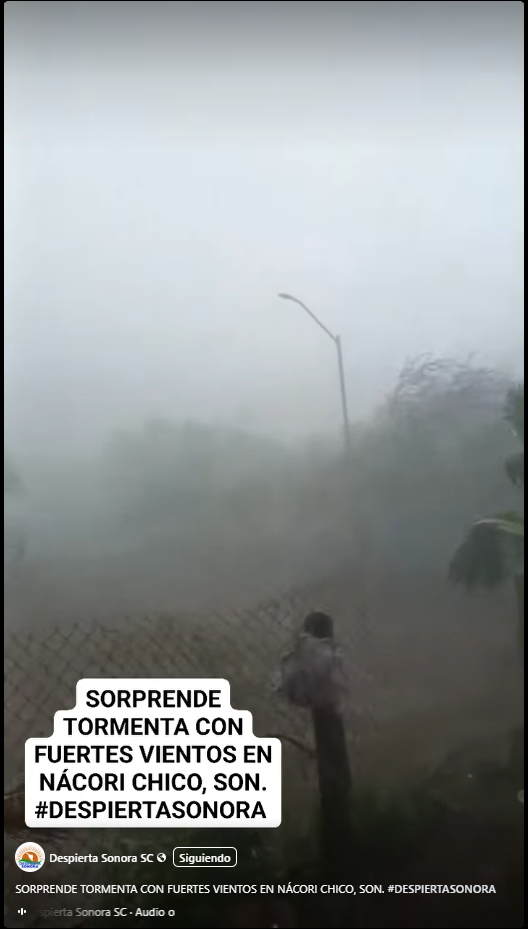 Sorprende tormenta con fuertes vientos en Nácori Chico, Son.