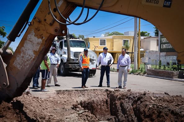 Durante el recorrido visitó la colonia FOVISSSTE, en la calle Otancahui y Tabachín, donde se presentó un hundimiento debido al colapso de una tubería de 12 pulgadas, ahí, trabajadores realizan labores para cambiar la tubería dañada.