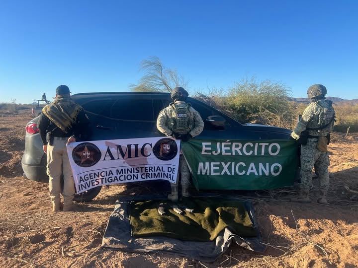 Plutarco Elías Calles, Sonora, 5 de agosto de 2025.- Elementos de la Agencia Ministerial de Investigación Criminal (AMIC), en coordinación con la Secretaría de la Defensa Nacional (DEFENSA), aseguraron un vehículo reportado como robado en Estados Unidos de América, así como cargadores y cartuchos para arma larga, durante operativos realizados en este municipio.