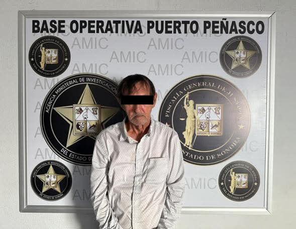 Puerto Peñasco.-La Fiscalía General de Justicia del Estado de Sonora (FGJES), a través de la Agencia Ministerial de Investigación Criminal (AMIC), logró la captura de David “N”, de 72 años, originario de Phoenix, Arizona, señalado como probable responsable de los delitos de pornografía infantil, posesión de material pornográfico y violación de libertad condicional, según una orden de arresto federal emitida en octubre de 2024 por la Corte del Distrito de Arizona, Estados Unidos de América.
