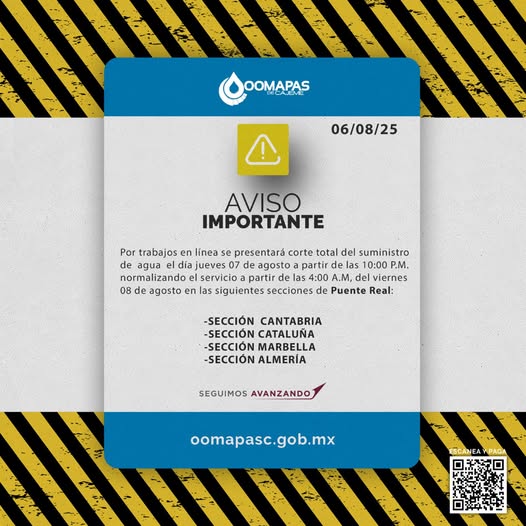 Por interconexión de líneas de agua, se suspenderá el servicio de en las siguientes secciones de la colonia