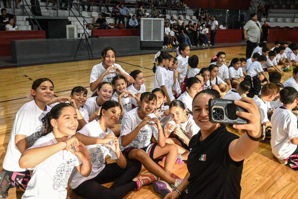 En un ambiente lleno de entusiasmo, 100 niñas y niños representantes de distintos clubes de baloncesto del municipio convivieron de manera cercana con integrantes de la Selección Mexicana de Básquetbol, participando en actividades como dinámicas físicas, encestes, firma de autógrafos, plática motivacional y sesiones fotográficas, que dejaron recuerdos imborrables.