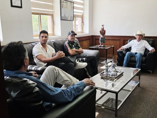 El Presidente Municipal de Cajeme, Javier Lamarque, recibió con entusiasmo a los exfutbolistas Salvador Cabañas y Jesús Molina, quienes visitaron Ciudad Obregón como parte de la promoción del Partido de Leyendas, en la reunión también participaron Felipe Lameiro, representante del evento, y el diputado local Raúl Castelo.