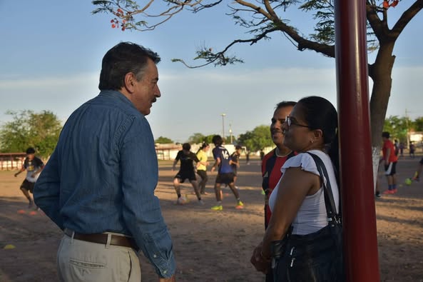 Previo al evento, Javier Lamarque visitó un campo deportivo ubicado en calle 400 y avenida España, donde saludó a niñas, niños, jóvenes y adultos que realizaban actividades físicas, ahí, el Alcalde se comprometió a mejorar el alumbrado, la seguridad y las instalaciones para fomentar el deporte en la zona, además, hizo entrega de boletos a familias para que puedan asistir al Partido de Leyendas este sábado en el Estadio NEY, donde se contará con la participación de figuras destacadas del fútbol nacional.