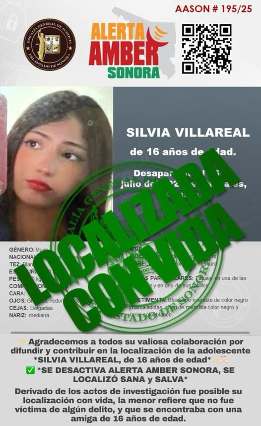 Derivado de los actos de investigación fue posible la localización con vida, la menor refiere que no fue víctima de algún delito, y que se encontraba con una amiga de 16 años de edad.