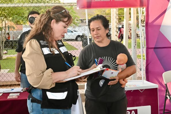 “Muchísimas gracias por estar en las colonias apoyando a la gente”, agradeció María Jesús Chávez, quién acudió a la feria de servicios por unos lentes y a tramitar un acta de nacimiento para su hijo.