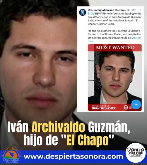 En un mensaje en X, ICE recuerda que Iván Archivaldo “y sus hermanos tomaron el control de la facción de ‘El Chapo’ del Cártel de Sinaloa, y a pesar de su mirada, este matón debe ser considerado armado y peligroso”.