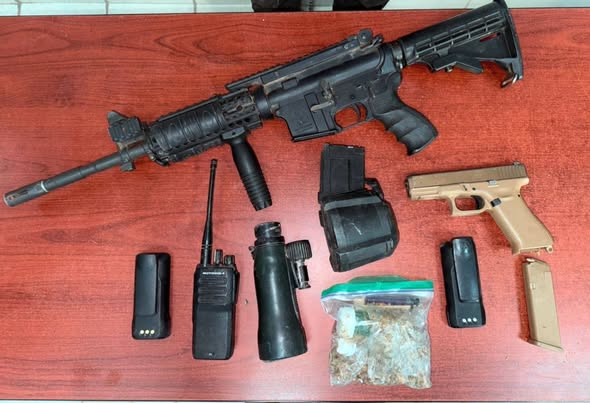 Como indicios, se aseguraron una pistola calibre .22, dos escopetas, calibres 12 y 20, un rifle de madera sin serie ni leyenda, 16 envoltorios con droga “cristal”, 36 envoltorios con cocaína y un cartucho marcado “LC23”.