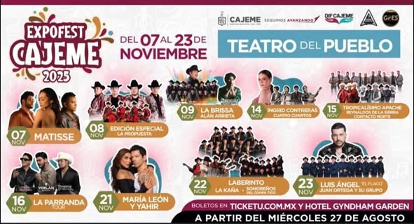 Conoce el elenco de la Expo Fest Cajeme 2025 que se llevará a cabo en noviembre