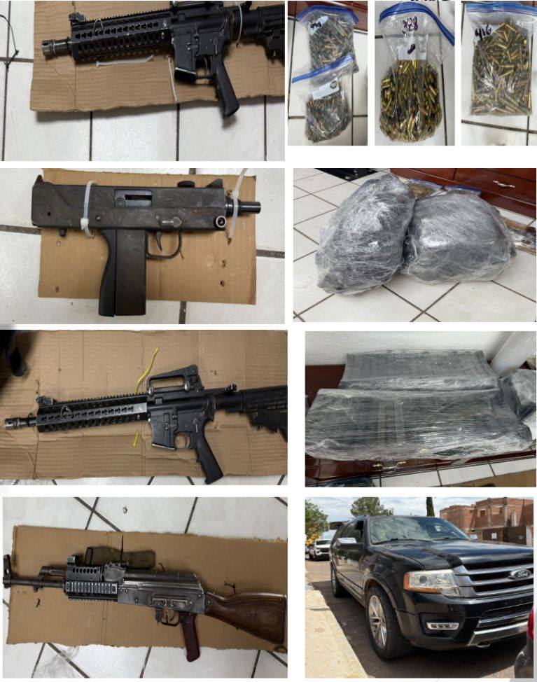 Hermosillo, Sonora; 18 de agosto de 2025.- Autoridades integrantes de la Mesa Estatal de Seguridad llevaron a cabo la detención de 130 personas y el decomiso de artefactos bélicos, droga y vehículos en distintos operativos en Navojoa, Cajeme, Hermosillo, Bácum, Agua Prieta, Nogales, San Luis Río Colorado, Caborca, Bacerac, Puerto Peñasco, Guaymas, Empalme, Yécora, Huatabampo y San Miguel de Horcasitas, del 11 al 17 de agosto.