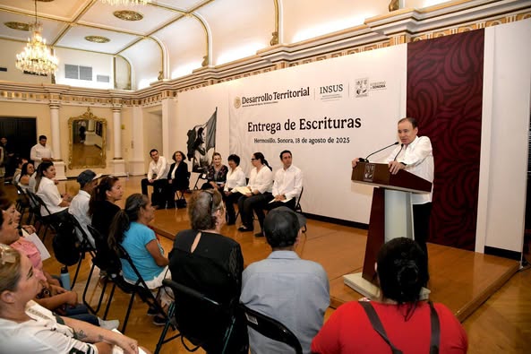 “Ustedes saben lo que representa esta escritura, no solo tranquilidad, certeza jurídica, sino la posibilidad también de heredar en su tiempo a sus hijos un bien que tiene un gran valor”, indicó el gobernador Durazo.