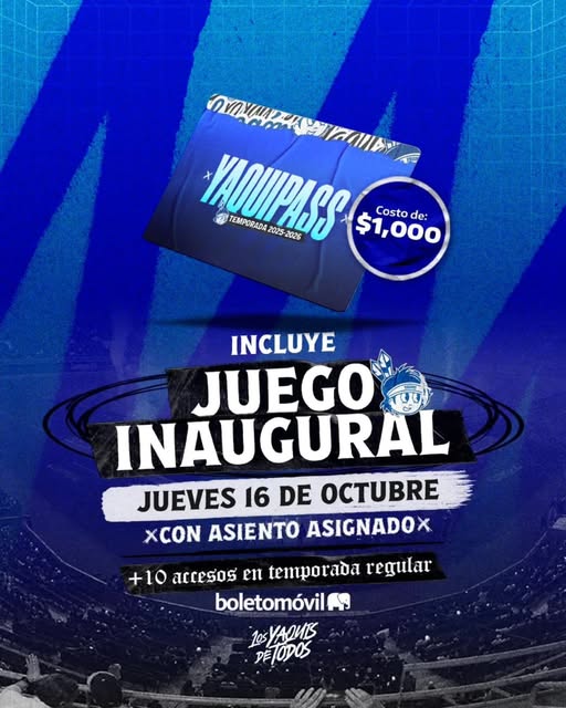 Adquiérelo en boletomovil.com o en oficinas del Estadio Yaquis