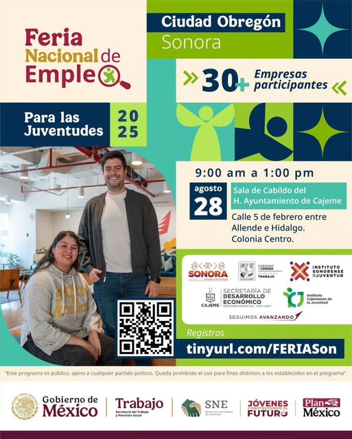 La Feria Nacional de Empleo 2025 llega a Ciudad Obregón con más de 30 empresas participantes que estarán ofreciendo oportunidades laborales.