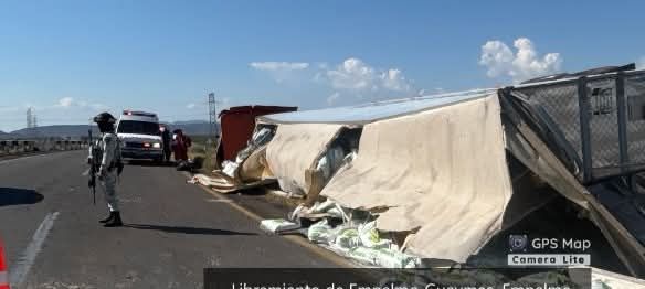 Debido a un accidente de un tractocamión, con una persona lesionada, hay tránsito lento en el kilómetro 107 de la carretera Ciudad Obregón-Libramiento a Guaymas.