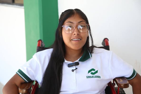 Syndey Escalante mencionó que las nuevas instalaciones de Conalep le permiten transitar en su silla de ruedas de forma cómoda y segura para asistir a sus clases.