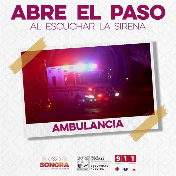 Hermosillo, Sonora; 27 de agosto de 2025.- Con el fomento permanente de la estrategia “Abre el Paso”, el Gobierno de Sonora busca crear conciencia entre la ciudadanía sobre la importancia de orillarse de inmediato ante la presencia de una ambulancia, policía o bomberos que se dirigen a salvar vidas.