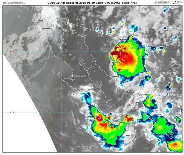 Línea de tormentas aproximándose a Hermosillo. Se prevé que en la próxima hora, esta actividad pueda originar precipitaciones moderadas, intensas rachas de viento y descargas eléctricas en algunos sectores de Hermosillo y en inmediaciones de San Pedro El Saucito.